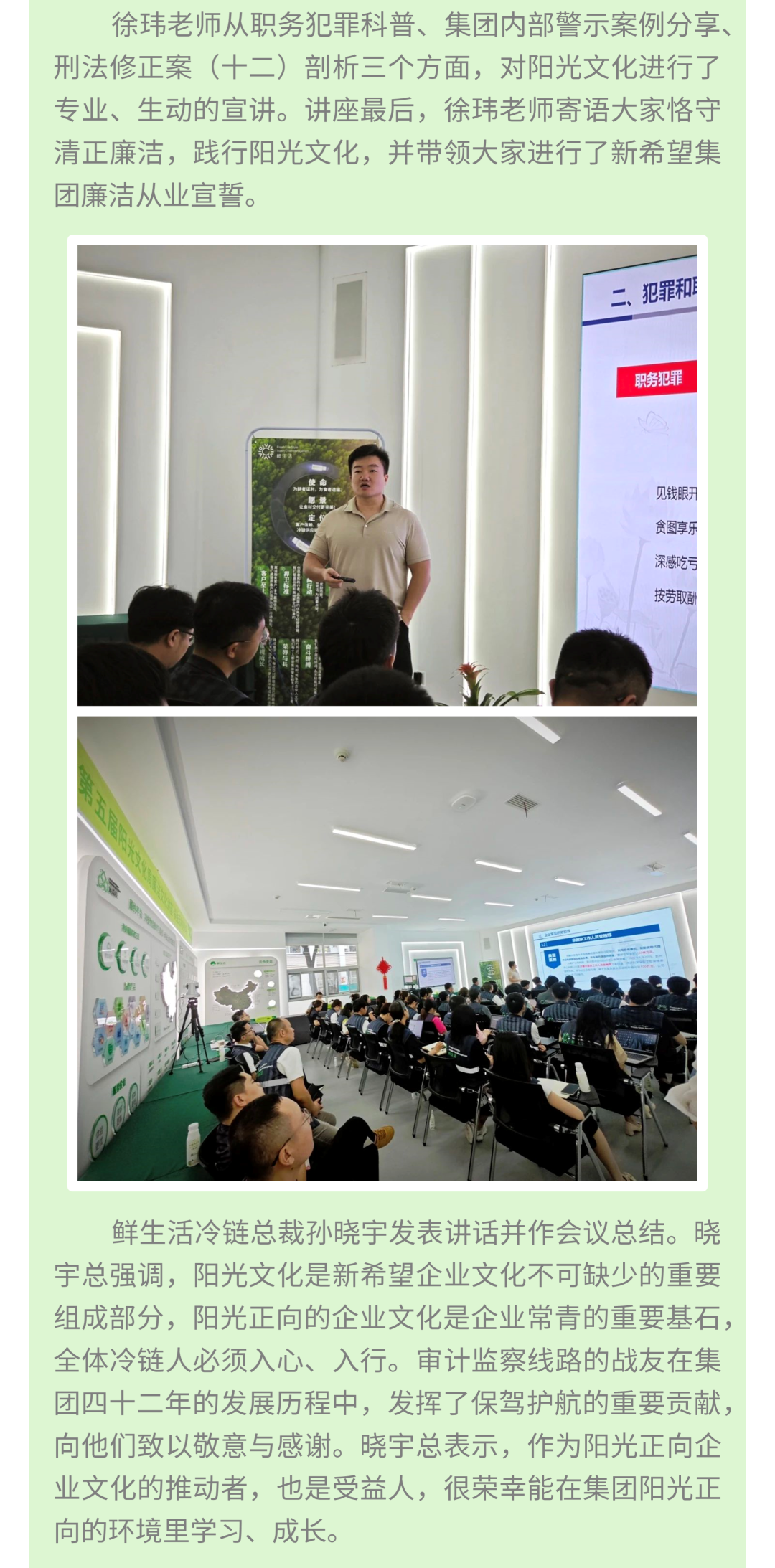 【阳光希望行】阳光宣讲走进新希望乳业和鲜生活冷链